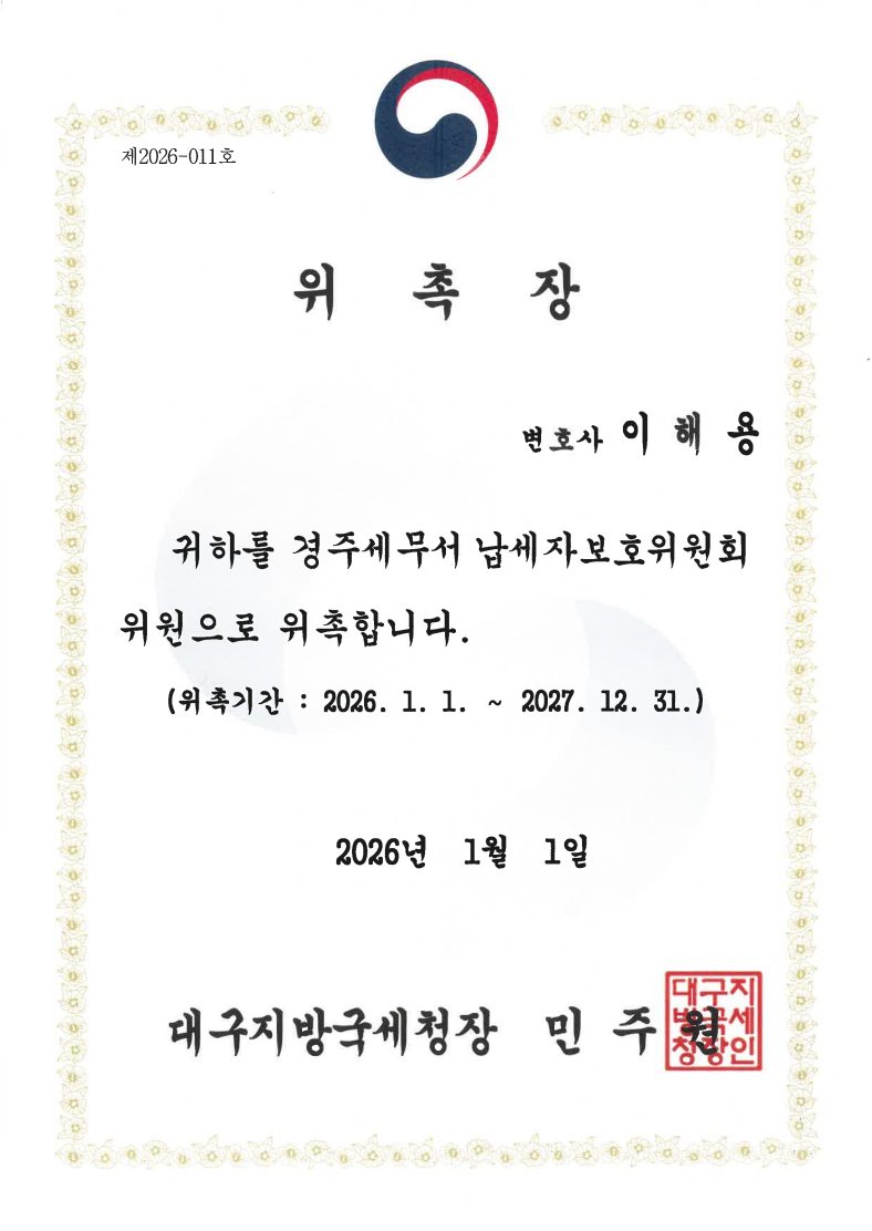 "사법시험 출신" 변호사로서 차별화된 서비스를 제공해 드립니다.
